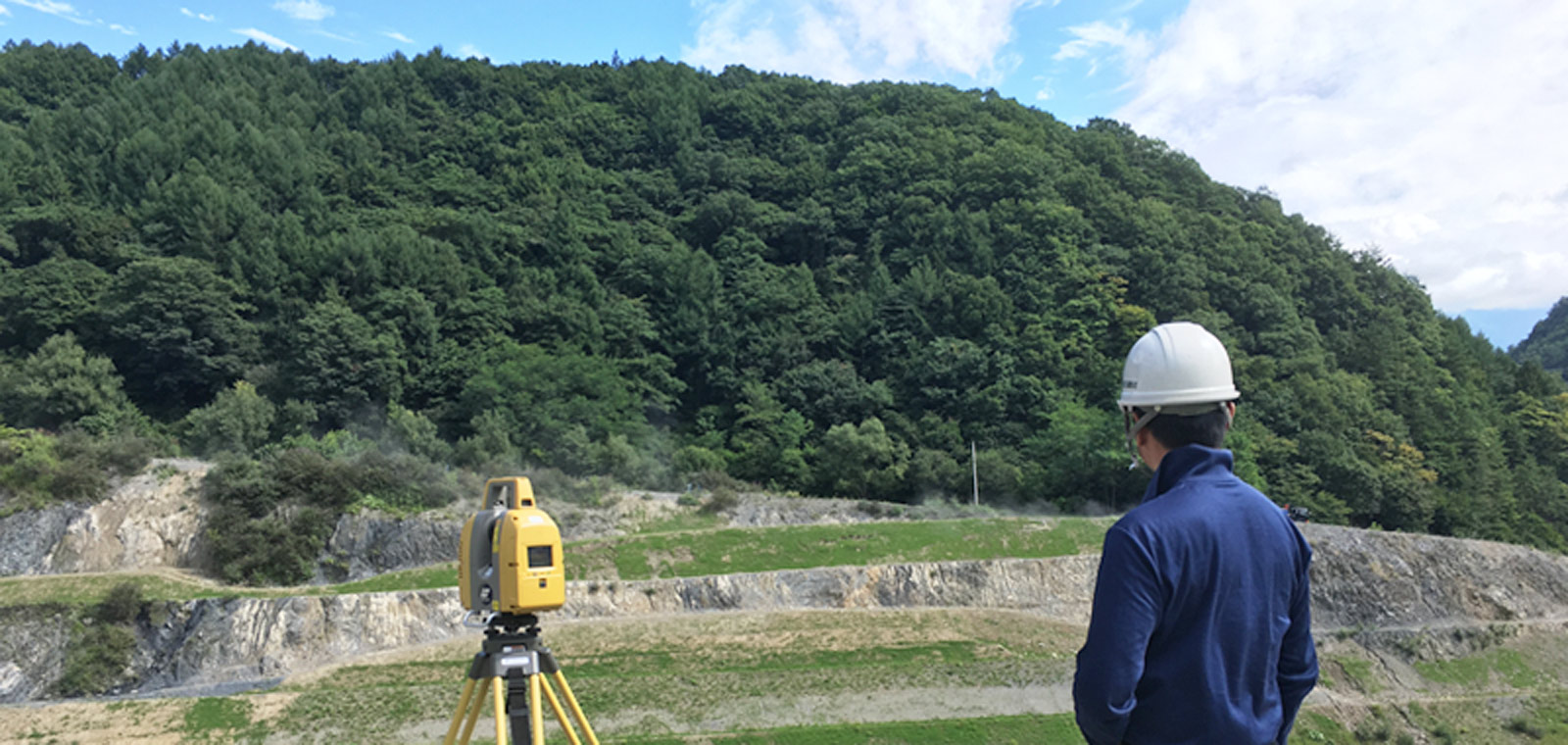 今まで行ってきたレベル・TS測量に加え、UAV現場空撮による写真測量とレーザースキャナ計測による点群作成を行います。GNSS観測も行います。